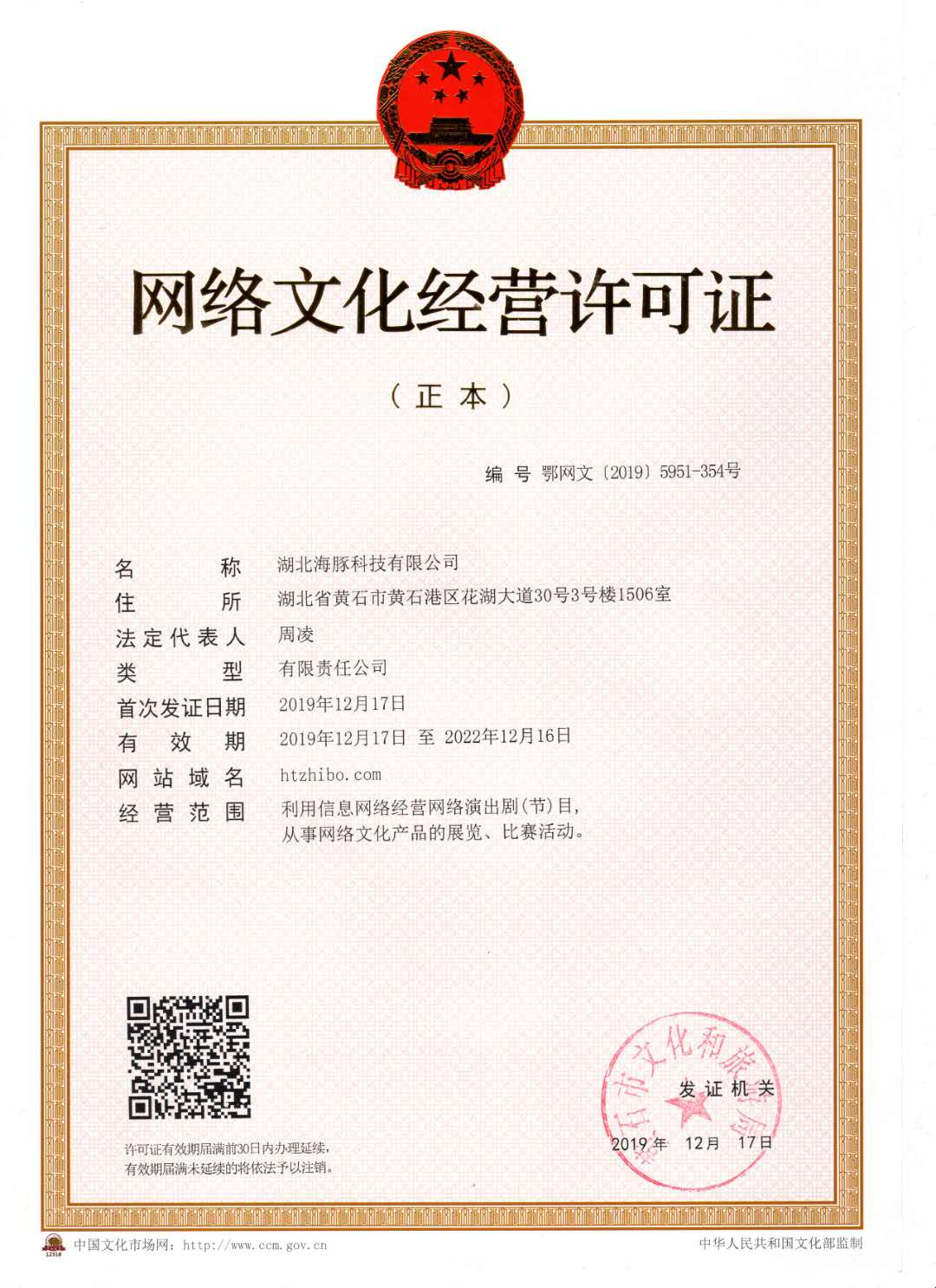 网络文化经营许可 编号 鄂网文(2019)5951-354号